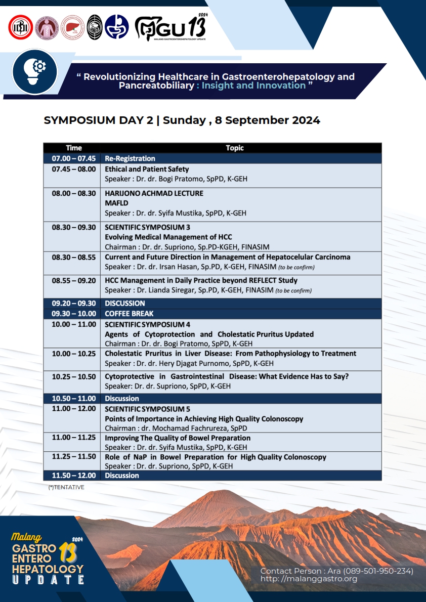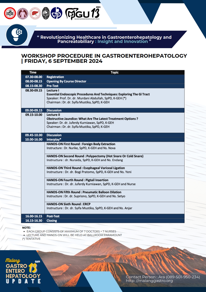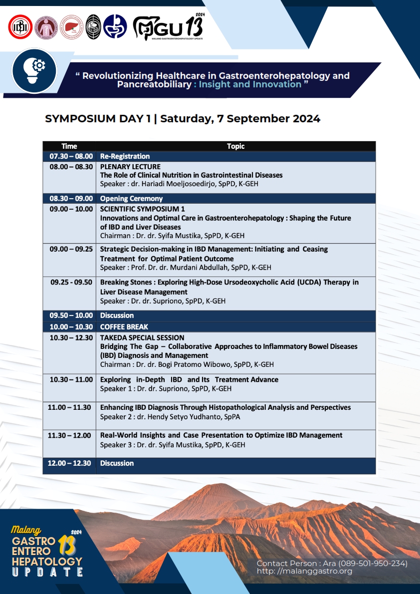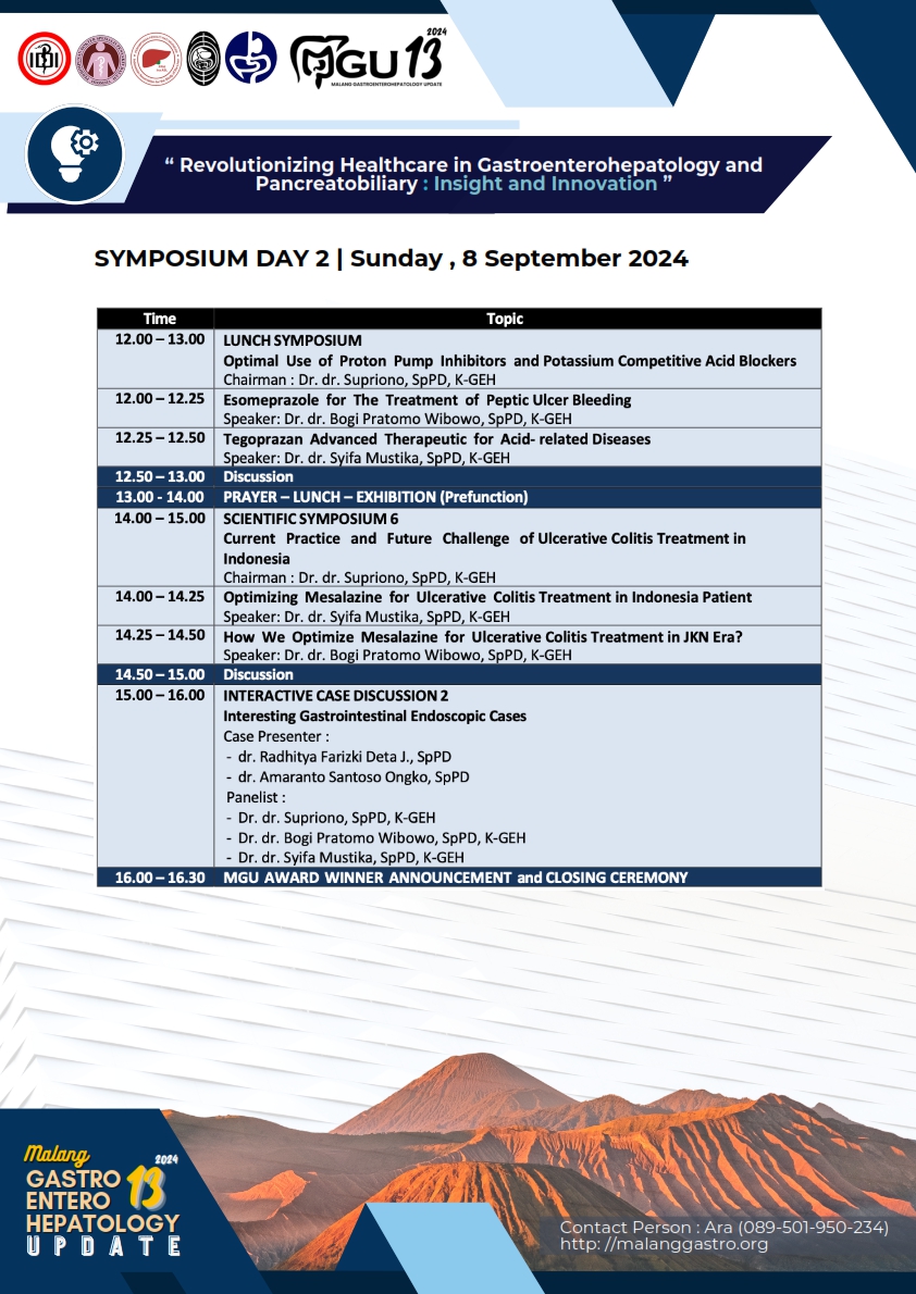 Berita yang menggembirakan! Bergabunglah dengan kami di Malang Gastroenterology Update (MGU) ke-13, sebuah acara penting bertema "Merevolusi Pelayanan Kesehatan dalam Gastroenterohepatologi dan Pankreatobilier: Wawasan dan Inovasi."