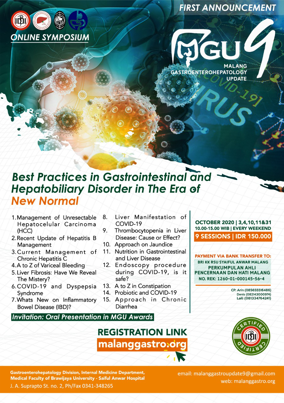 The MGU AWARD is committed to the development of scientific research, clinical trial, or case report/series about Gastro-Entero-Hepatology diseases, in order to improve the young generation's curiosity of new medical update. We work closely with the Internal Medicine Society of Indonesia (PAPDI), Indonesian Doctor Association (IDI), Indonesian Hepatology Researcher Society (ASL), Indonesian Gastroenterohepatology Association (PGI) and Indonesian Gastrointestinal Endoscopy Society (PEGI), to promote and advocate Gastroenterohepatology research development.